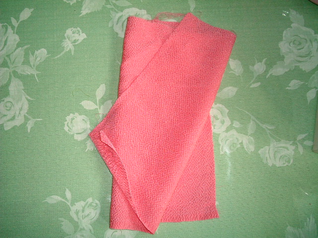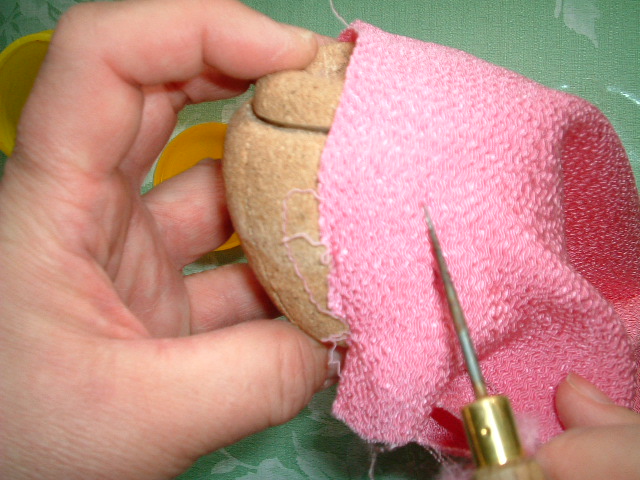 4,布目を確かめてボディの溝に、布を差し込んでいきます。