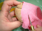 のりを入れて、布地を木目込んでいくので、木目込み人形と