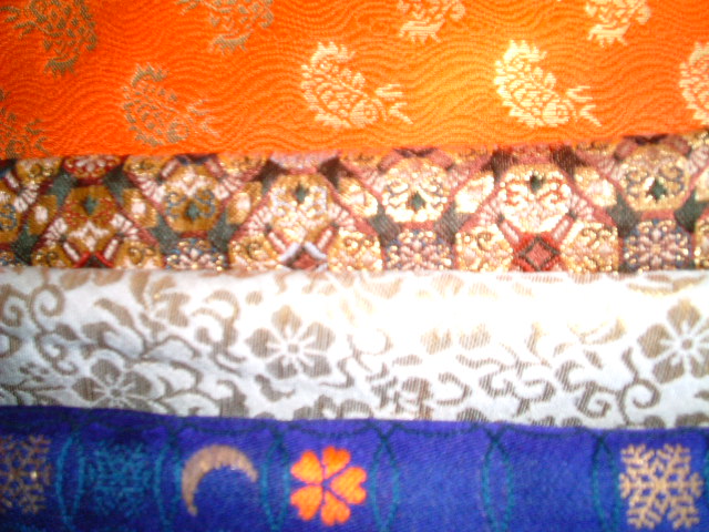 に布地(金襴、ちりめん、など)を木目込んでいきます。