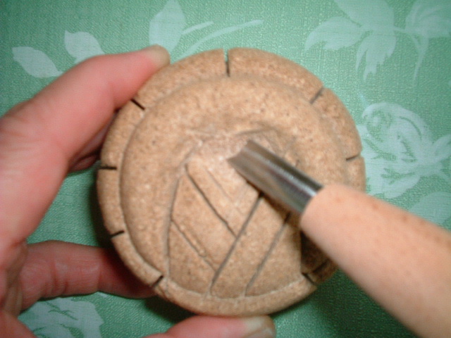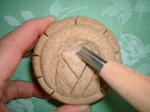 3,ボディの溝に、目打ちを使い溝に糊を入れます。